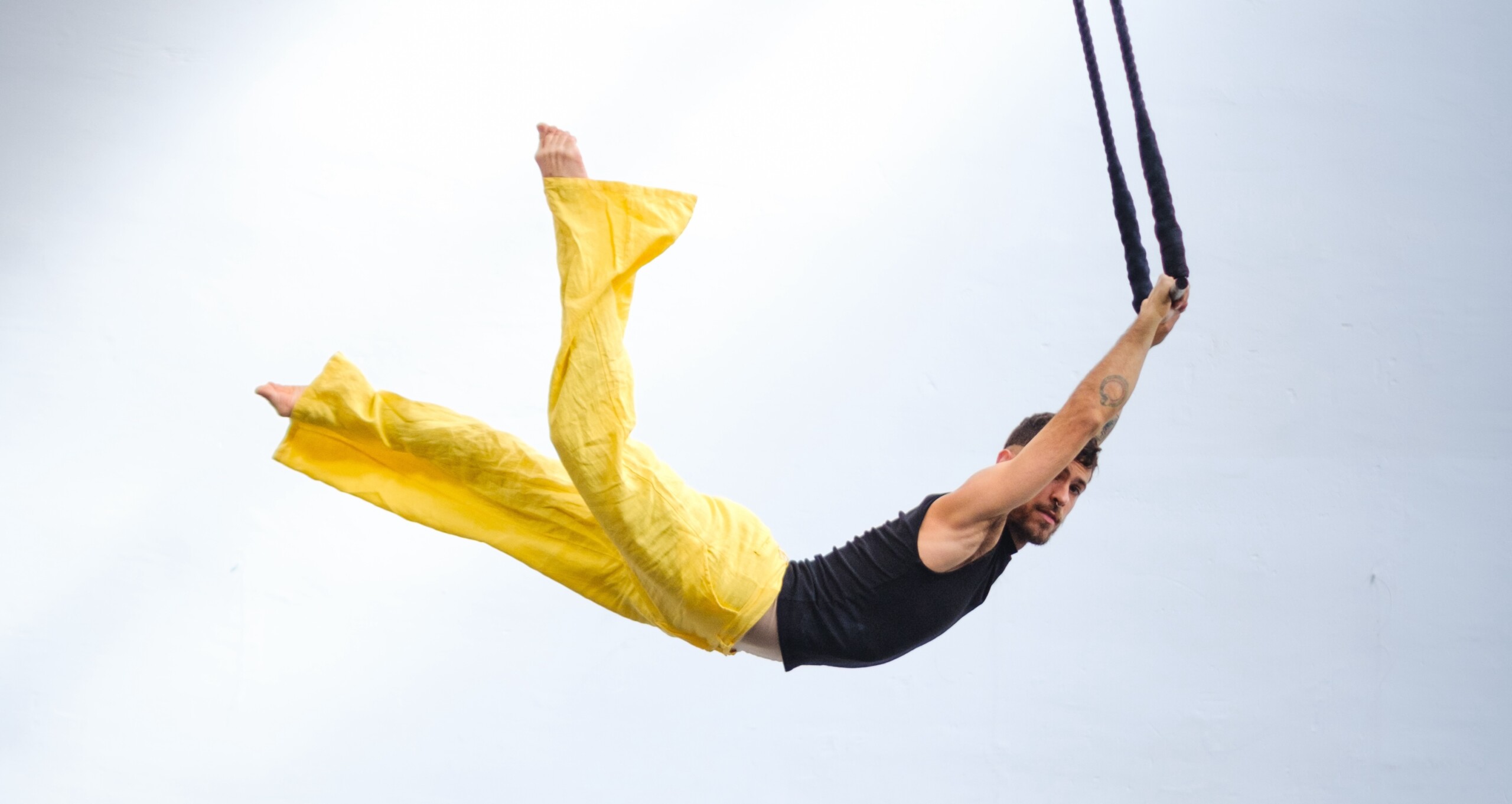 “Harmonic Motion” is a training methodology developed by Nicolas Stocco (Argentinian aerial artist) for learning and developing aerial technique. It is based on didactic and methodological exercises executed both on the ground and in the air, and has the aim of improving the apprentice’s motor and coordination skills, as well as their strength and flexibility. In essence, we work with the development of body awareness in order to understand the positioning and correct use of our center and our shoulder blades, fundamental pillars in aerial acrobatics, as well as the physic laws that affect our bodies.