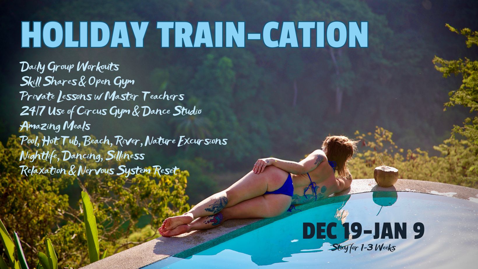 This Holiday Train-cation is perfect for circus artists, aerial students, and fitness addicts as well as out of shape and/or aging bodies who want to feel better and get back into their bodies in a welcoming & inclusive environment. We don’t care if you are an award winning super star or an out of shape ‘not sure how fitness fits into my life anymore’ human.