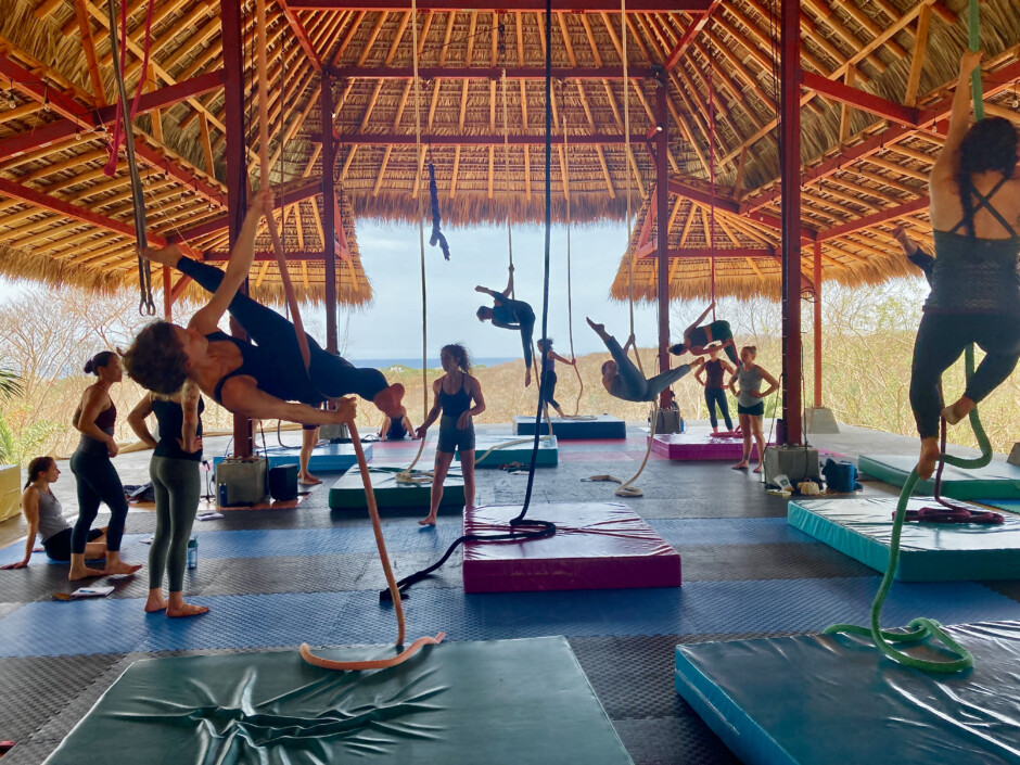 Daily classes revolve around development of rope skills and exploration of those skills through taught choreography. Part of that skill development will involve drills on straps and cross conditioning on the ground. PJ develops original choreography specifically for the retreat as a way to introduce and explore skills that may take some time. This particular week has a heavy emphasis on smart conditioning practices to safely approach higher level skills.
